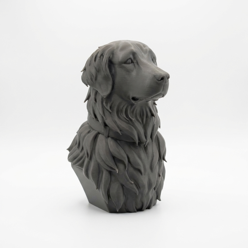 Golden Retriever dog head sculpture captures the friendly and loyal expression of one of the most beloved dog breeds.